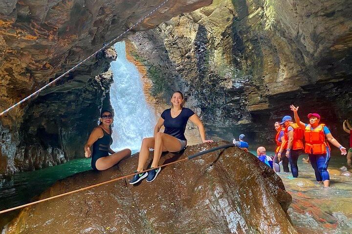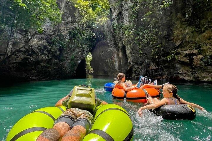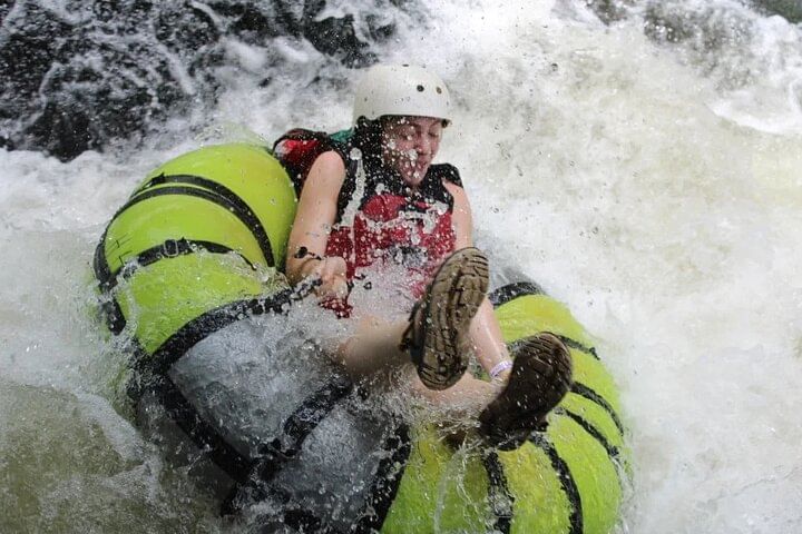 This beautiful tour starts from the moment you enter our transport unit; our driver and guide will give you valuable information during the tour until you reach the village of Curubande, where we will start our walk to the La Leona Waterfall inside the forest and along the White River, which rises in the volcano Rincón de la Vieja. We will go around incredible rock formations, cross rivers, walk down small steps and at the end, swim through a canyon to enter the cave where we will discover La Leone Falls. To then feel pure adrenaline in the tubing where it is performed on the Colorado River, it is 5 kilometers of class I, II and III rapids along the river and turbulent waters. Our individual tyres are designed with grips and protection. The guides accompany you throughout the tour to ensure your safety and the enjoyment of this experience.